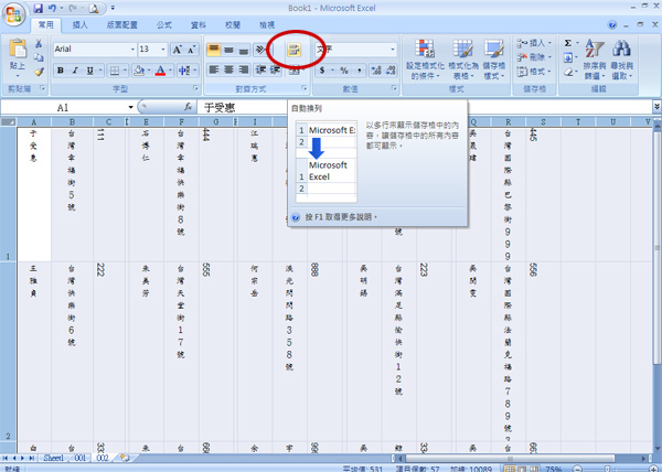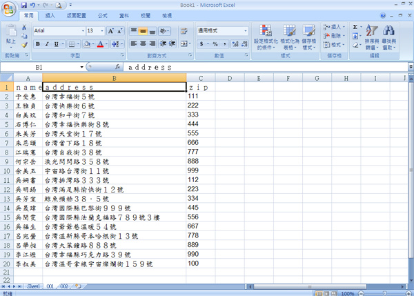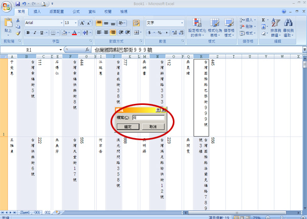 **EXCEL直接列印名條的好處是不用半形轉全形字 :)